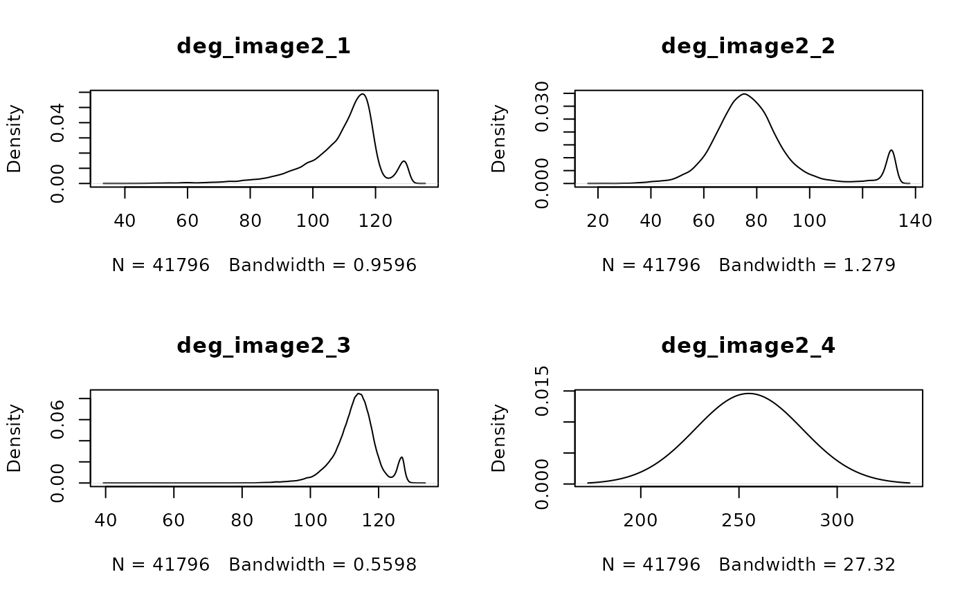 Density plot of intensity values for image objects. N total values examined. Bandwidth refers to the curve smoothing value applied.