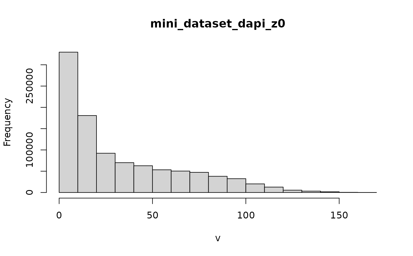 Create a histogram of the pixel values of a giottoLargeImage. Wrapper around